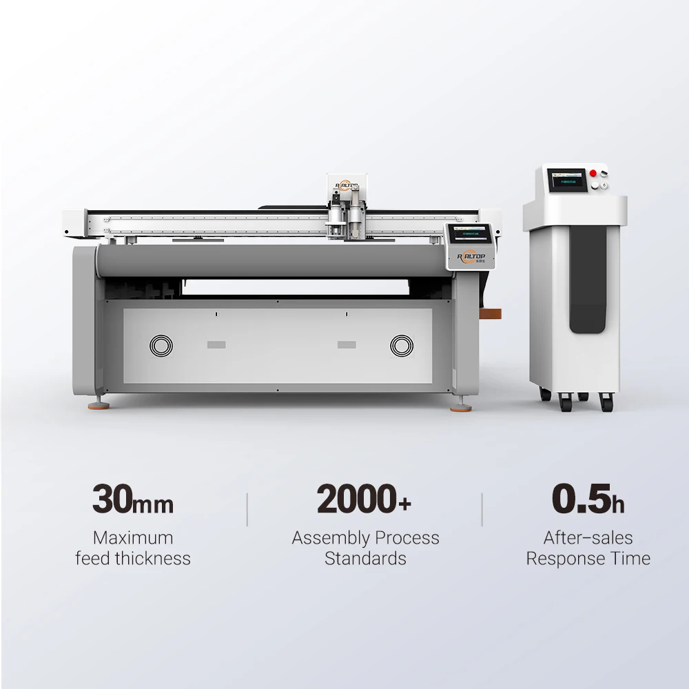 REALTOP CNC cutting machine uses a high-precision digital cutting system. which can realize full size cutting. kiss cutting. slot milling.