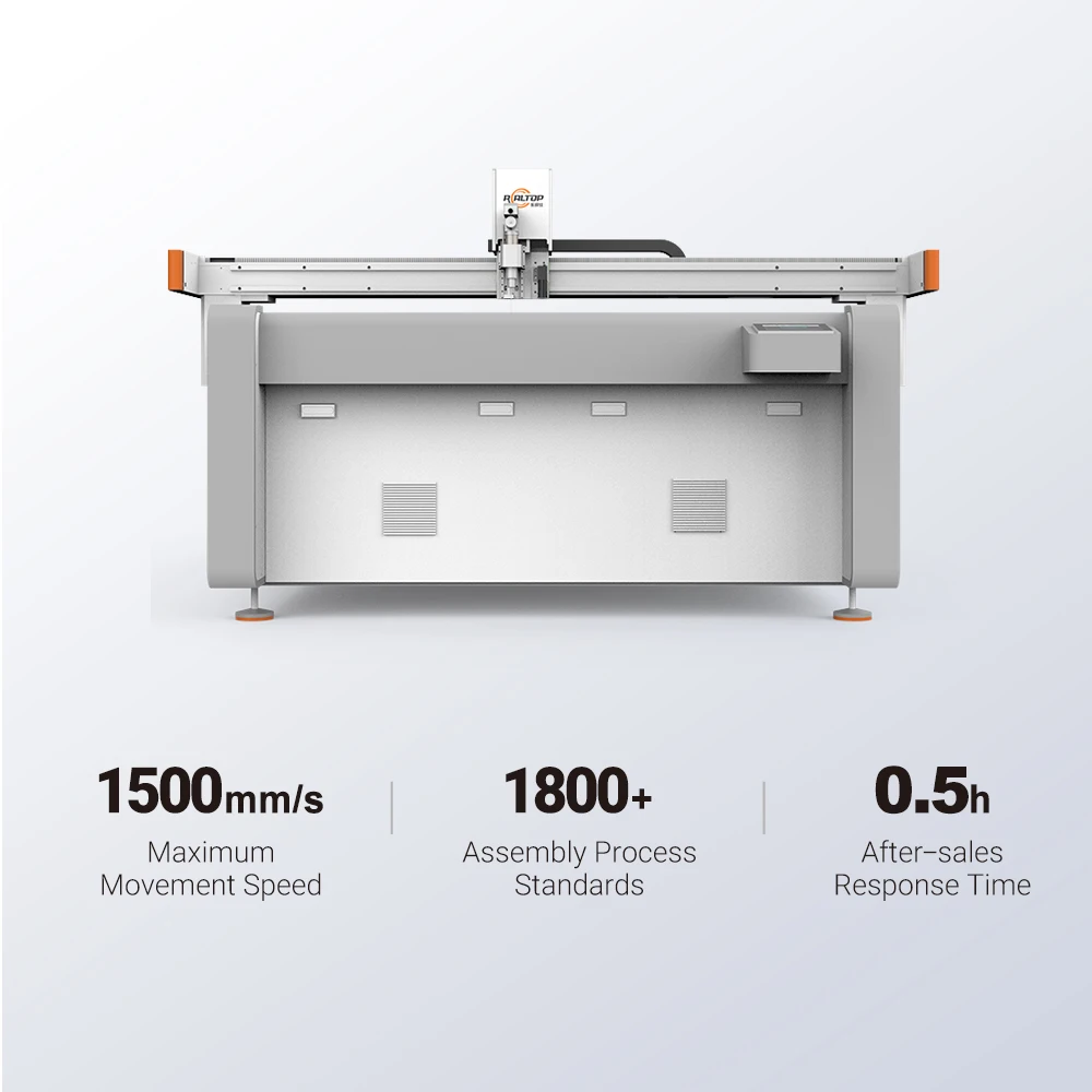 REALTOP CNC cutting machine uses a high-precision digital cutting system. which can realize full size cutting. kiss cutting. slot milling.